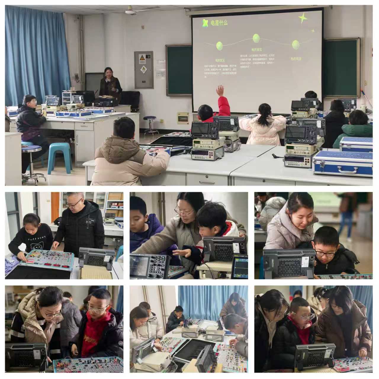 根据学校关于寒假期间实验室开放的部署安排,1月10日上午,电工电子国家级实验教学示范中心举办2026年寒假实验室面向中小学生开放电工电子科普活动。来自中国矿业大学附属学校、徐州市大学路实验学校、鼓楼小学、光荣巷小学、东湖实验小学、青年路小学、民富园小学、江苏师范大学附属学校等单位的近30余名中小学生及学生家长参加了本次活动。
